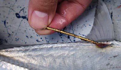 1) Date of capture 2) Tag number 3) Species of fish (omilu, white, etc.) 4) Length (fork length; from the tip of the nose to the V in the tail) 5) Location (area, ex. Ala Moana Park, Kaunakakai Harbor, etc.) 6) Time 7) Weight (optional) Anglers: Name, Address and contact phone number Options after landing a tagged fish. 1) Fish can be released - Please do not remove tag. Record and report all of the information above. Then gently release the fish. 2) Fish can be kept- if it is of legal size and will not exceed your daily bag limit. Please check the DAR website (www.hawaii.gov/dlnr/dar) for current regulations and updates Please remove the tag and return it with all of the information above to DAR. Record and report all recovery information above to: DAR Ulua Tagging Project (808) 587-0593 or email information to uluatagging@hawaii.gov |